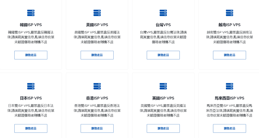 | 越南ISP | 2核 | 2G | 20G | 200M/2T | 20 IPv4(双ISP) | $160/月 |